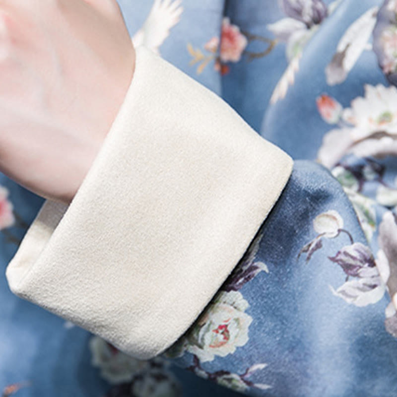 La camisa de algodón con diseño de abanico floral presenta un diseño típico de traje Tang con flores, abanicos y pájaros bordados, que simbolizan la belleza y la armonía . Confeccionada en tela de algodón de primera calidad, incluye botones tradicionales de rana y prácticos bolsillos. Esta significativa camisa de algodón es ideal para las celebraciones del Año Nuevo Chino, conectando a quienes la llevan con las bendiciones, el patrimonio cultural y el espíritu festivo de una manera elegante.