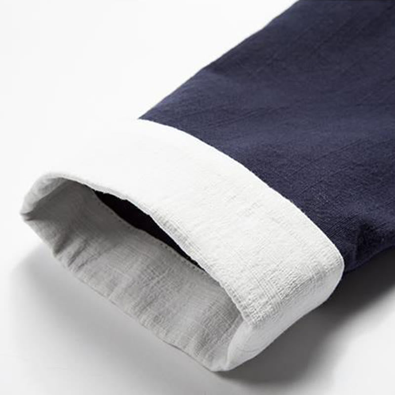 Chaqueta tipo kimono de lino y algodón para hombre, con diseño de rana china y botones de piedra de Buddha Stones , manga larga y abertura frontal. - Azul medianoche - US/UK/AU44, EU54 (4XL) - image 6