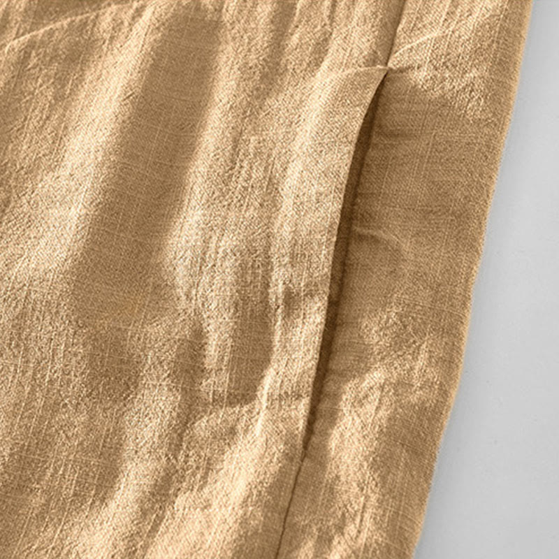Chaqueta de lino y ramio de manga larga para hombre con diseño de botones sencillos y bolsillos de Buddha Stones Commute - image 12