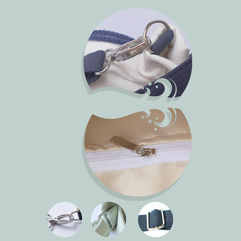 - Material: tela de lona, accesorios de cuentas de cerámica.