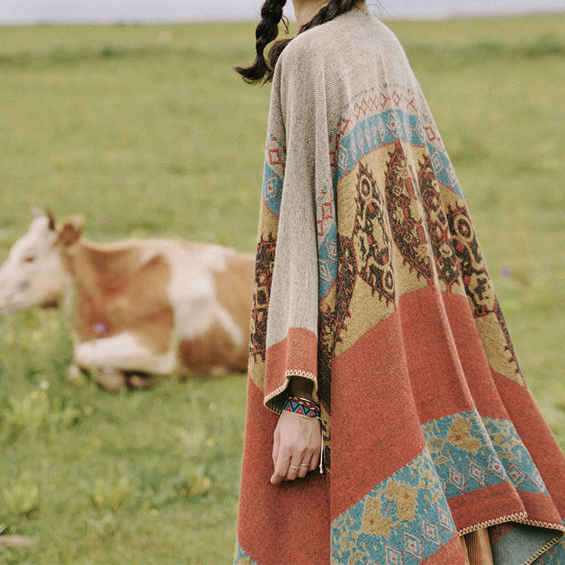 Bufanda de capa cálida de invierno con patrón de diamantes de chal tibetano de Buddha Stones