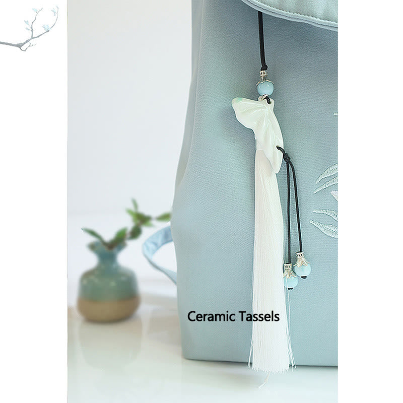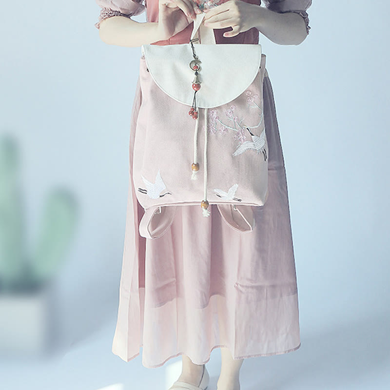 Mochila de lona de gran capacidad bordada hecha a mano con Buddha Stones - Grulla blanca cereza - image 31