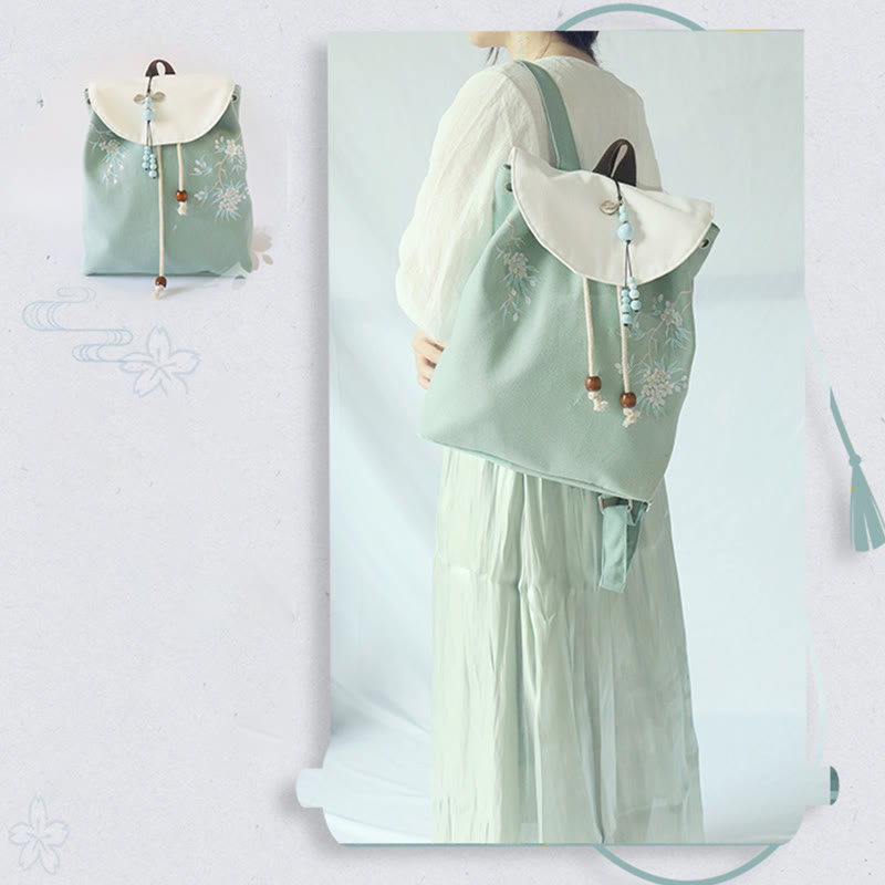 Mochila de lona de gran capacidad bordada hecha a mano con Buddha Stones - Bambú de flor de ciruelo - image 41