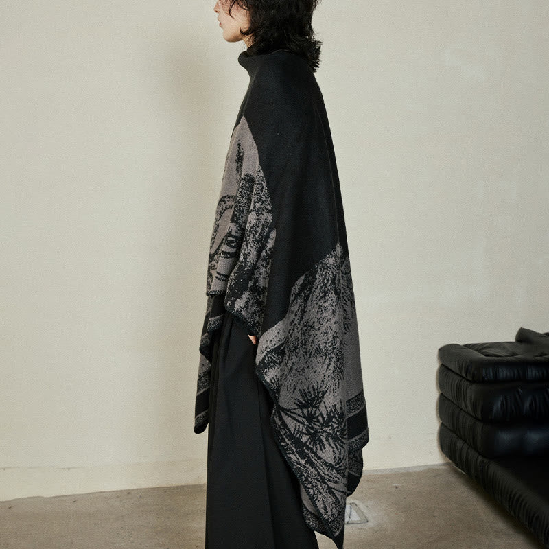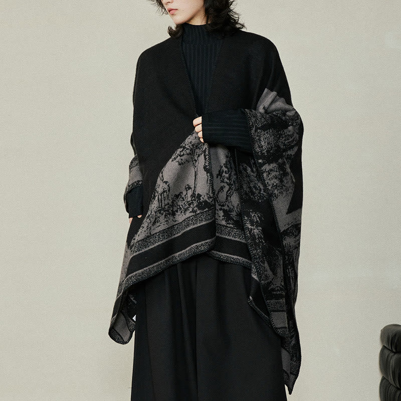 Buddha Stones cálida de otoño e invierno con diseño de ciervo sika, color negro y gris, de doble cara, con diseño de animales del bosque