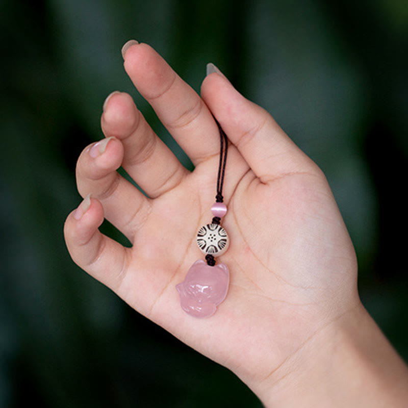 Decoración colgante para teléfono con armonía de zorro de calcedonia natural