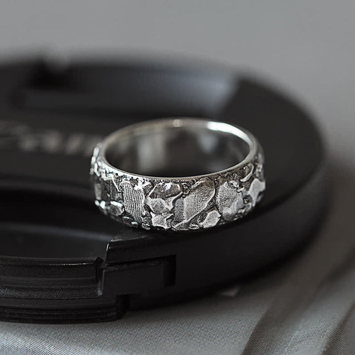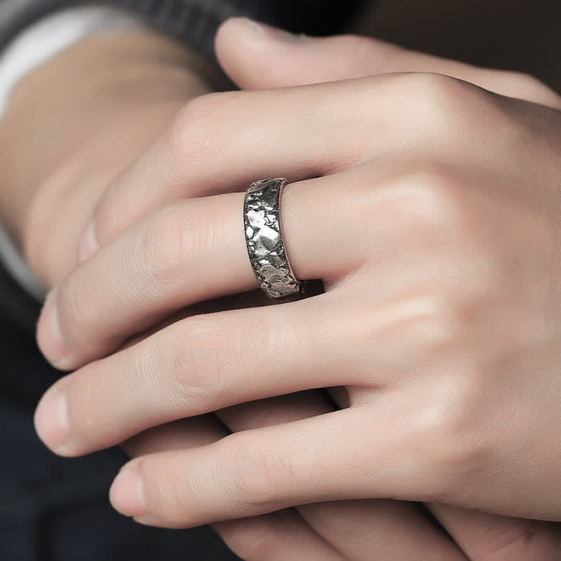 Anillo de cobre con bendición de la suerte y patrón de roca