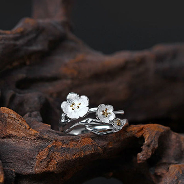 Anillo de equilibrio con seno ciruela y Buddha Stones en plata de ley 925 - Estambres dorados - image 0