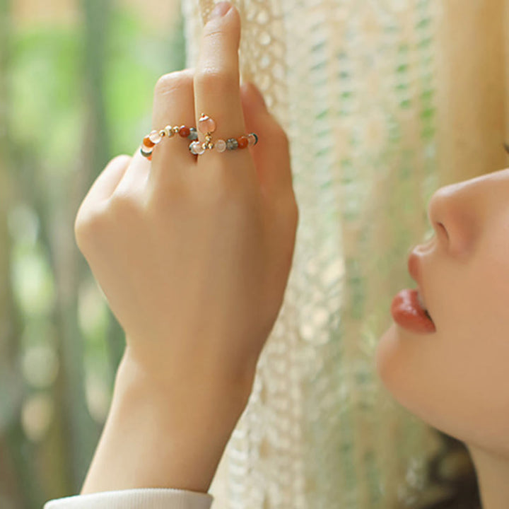 - Tamaño de la cuenta: cristal fulu shou: 4,5 mm, piedra lunar melocotón: 6 mm, cuentas de cobre: 2,5 mm, espaciador: 4 mm