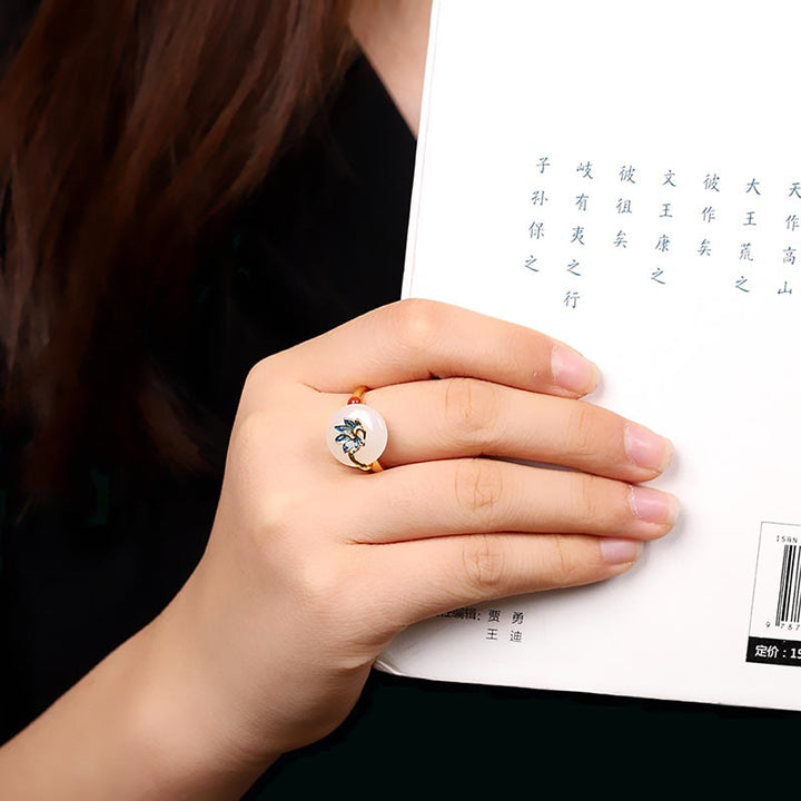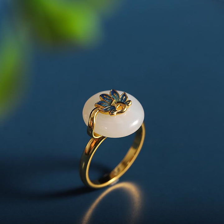 Juego de pendientes, anillo y colgante de plata de ley 925 con Buddha Stones, Jade blanco Natural Hetian, pavo real, bendición