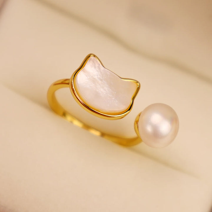 Pendientes colgantes con collar curativo de gato de cobre y perlas naturales de Buddha Stones - Anillo blanco (ajustable) - image 9