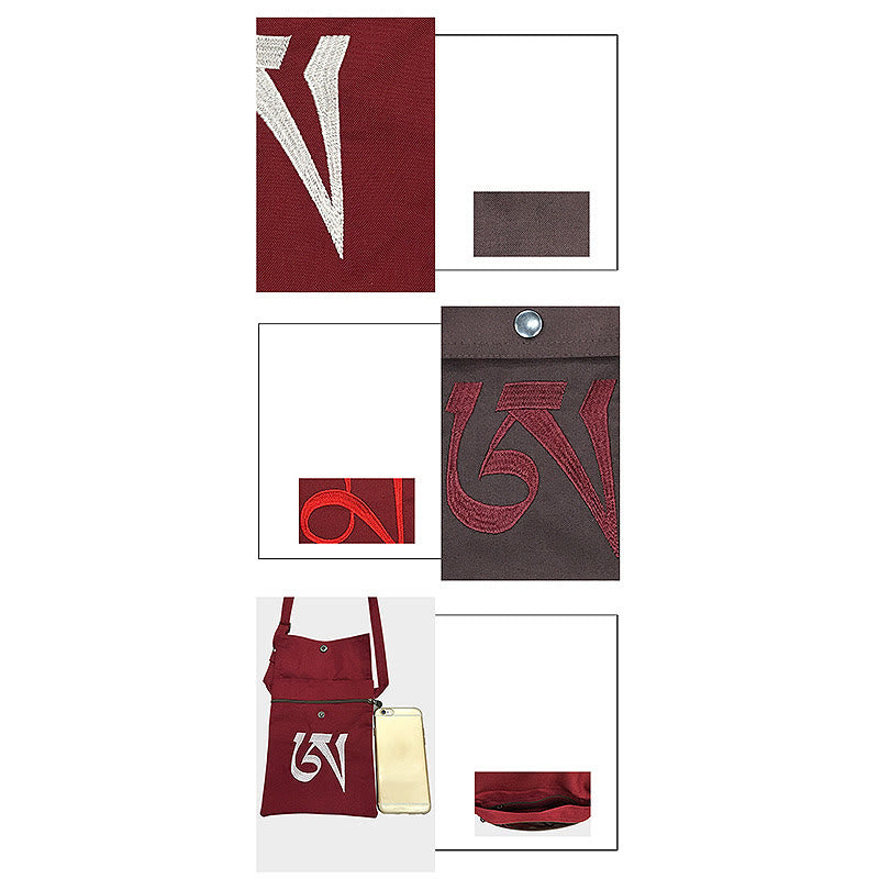 Hecho a mano OM Mantra bordado espiritual mente práctica algodón crossbody bolso hombro bolso teléfono celular