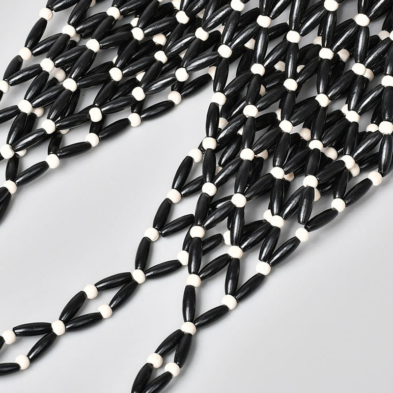 - Material: Cuentas de Madera, Poliéster Algodón