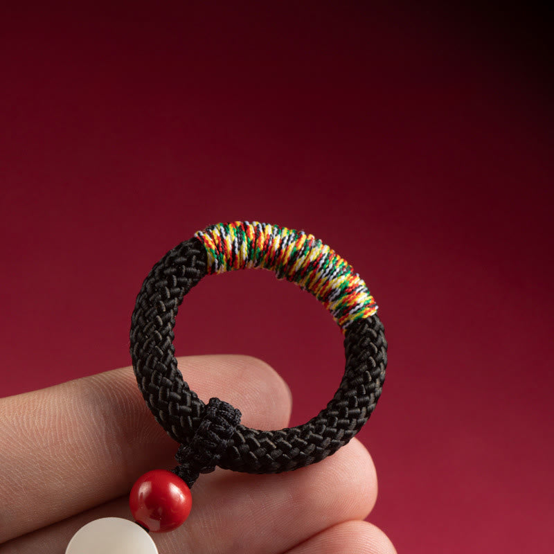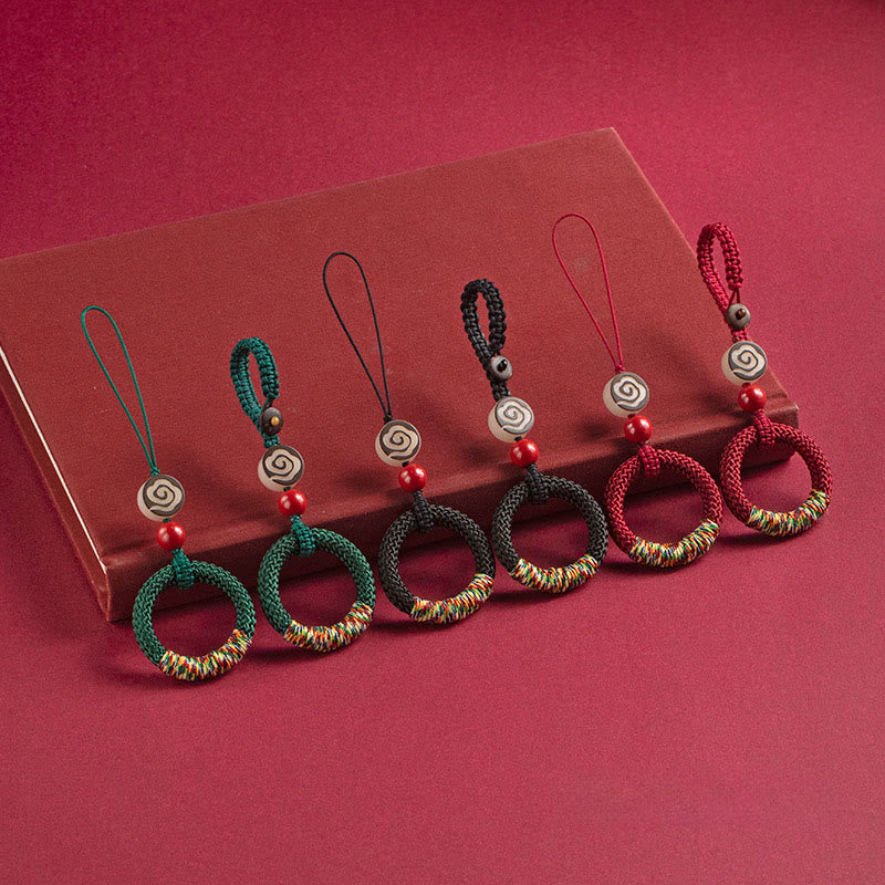 Buddha Stones tejidas a mano con hilo colorido y hebilla de marfil y cinabrio para colgar en el teléfono. - Llavero negro - image 2