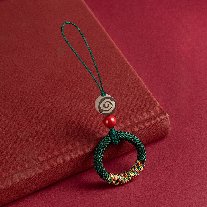 Buddha Stones tejidas a mano con hilo colorido y hebilla de marfil y cinabrio para colgar en el teléfono. - Llavero verde - image 1