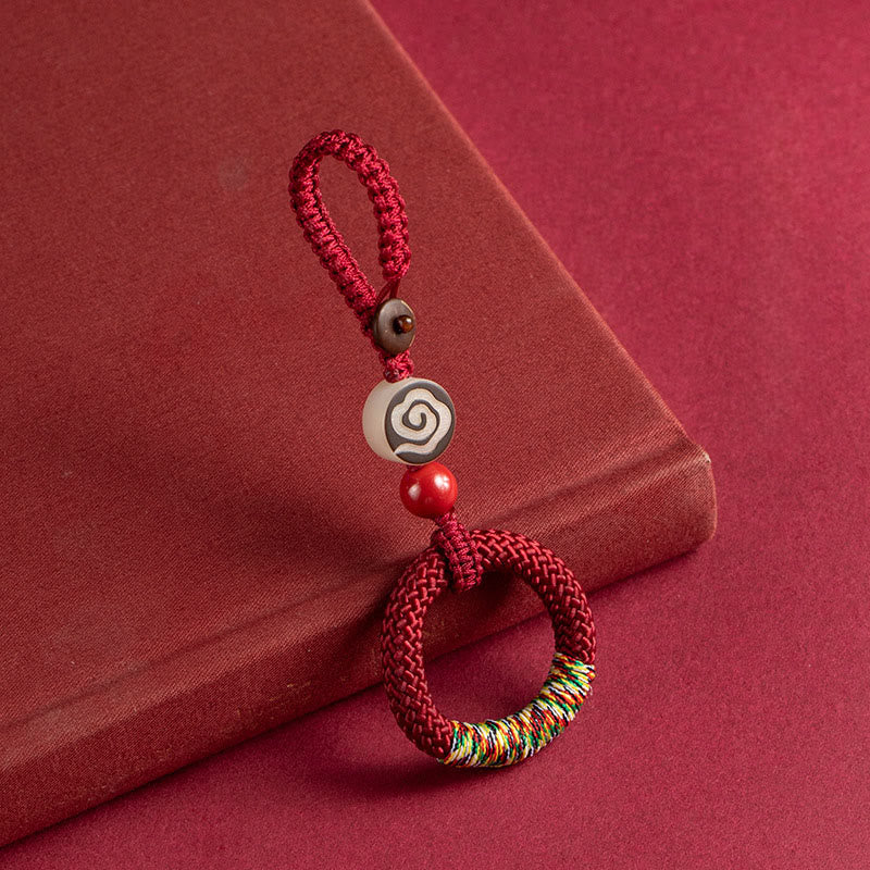 Buddha Stones tejidas a mano con hilo colorido y hebilla de marfil y cinabrio para colgar en el teléfono. - Llavero rojo - image 6