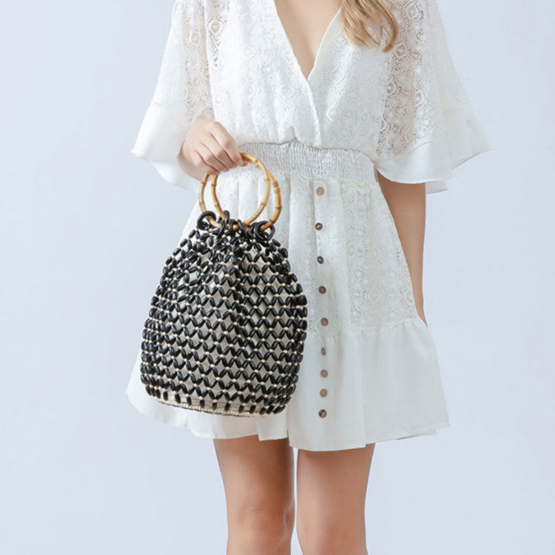 - ❤️ Material de alta calidad: los bolsos están hechos de cuentas de madera y algodón de poliéster, son duraderos y pueden usarse durante mucho tiempo, y es una opción ideal para llevar cosas. La correa lo hace conveniente para llevar cuando sales.