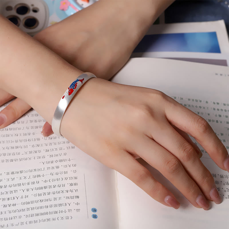 Brazalete de plata de ley 999 con Buddha Stones , diseño de pez koi