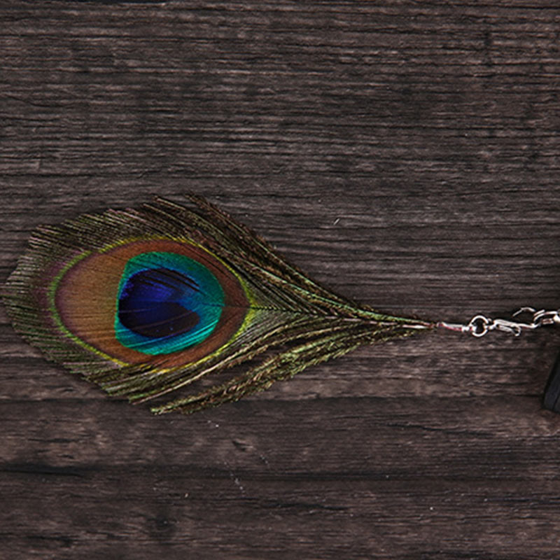Buddha Stones Abanico Plegable de Bambu con Pluma de Pavo Real de 21.5cm