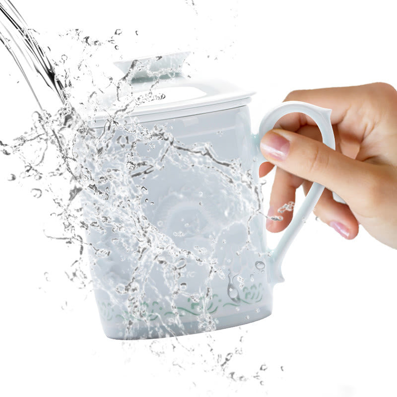 Buddha Stones Jingdezhen Linglong porcelana auspiciosa dragón Fénix barco navegación suave taza de té de cerámica tazas de té de oficina 420ml