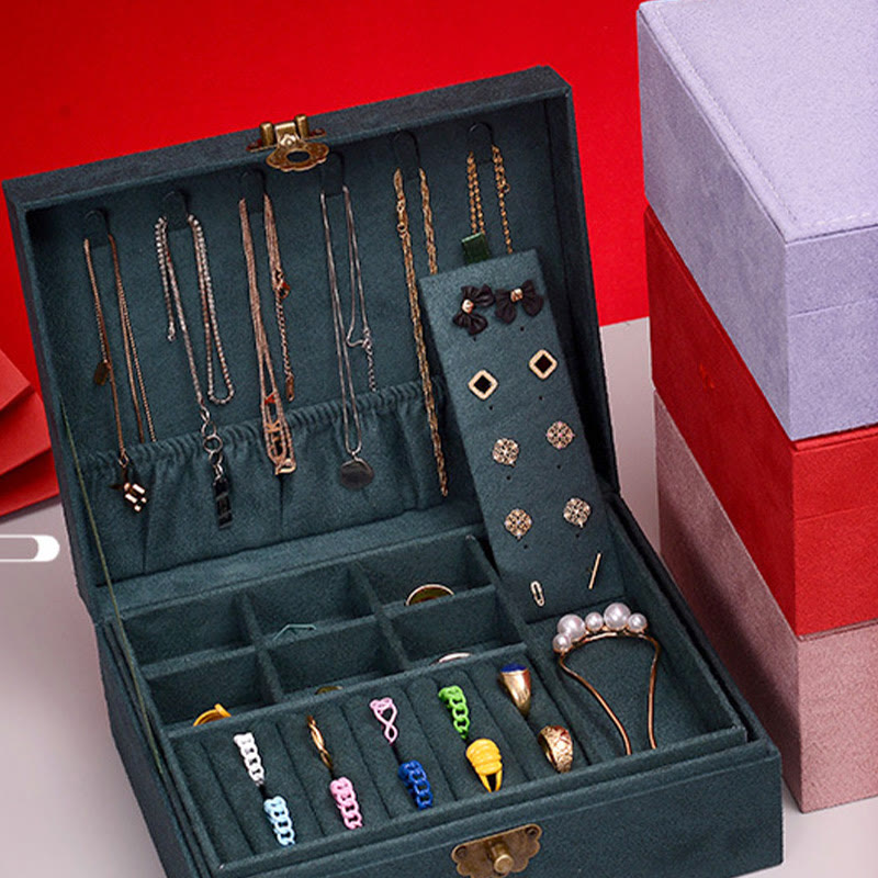 Caja organizadora de joyas de diseño Simple con Buddha Stones, caja de almacenamiento de joyas de dos capas, caja de franela con cerradura - image 26