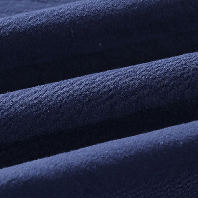 Camisa de lino y algodón con un botón y manga tres cuartos de color liso para hombre con Buddha Stones