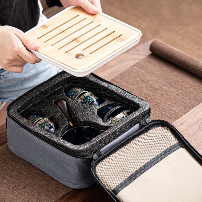 Juego de té chino gongfu, tetera de cerámica con diseño, bolsa de regalo portátil