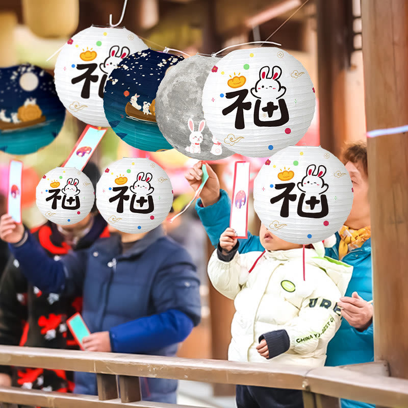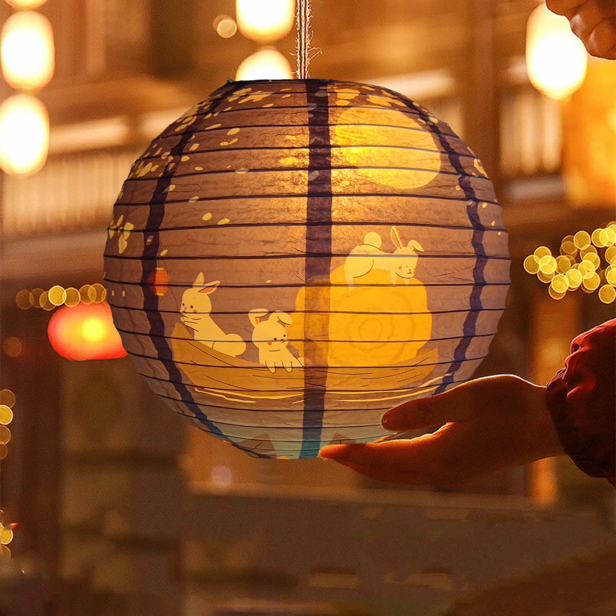 Lámpara de farol de papel de conejo DIY con Buddha Stones, decoración de farol para Festival del Medio Otoño