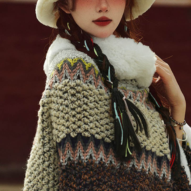 Mantón de rayas multicolor tibetano con Buddha Stones , bufanda de viaje acogedora para invierno - Beige Marrón Rosa - image 53