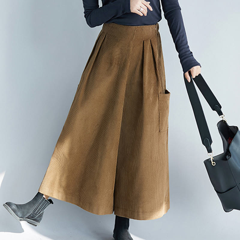 Pantalones de pana anchos con cremallera lateral para mujer de Buddha Stones , de largo 7-8 y bolsillos - image 17