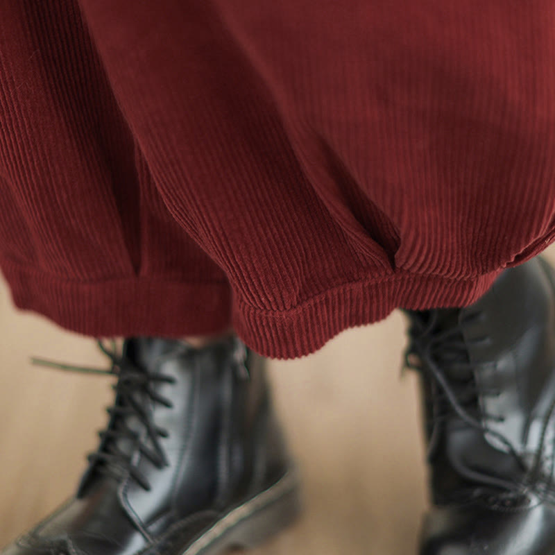 Pantalones harén de pana para mujer con cintura elástica y bolsillos, diseño Buddha Stones