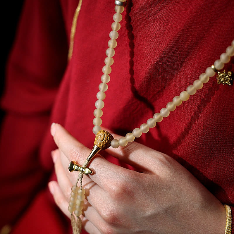 - Material: Cuerno de oveja, latón, ojo de tigre, jade hetiano, Buda natal del zodíaco chino de plata