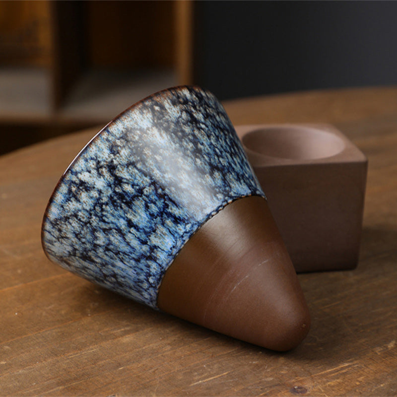 Taza de café de cerámica con cambio de horno retro, piedras de Buda, té, café expreso con leche, con base, 200ml