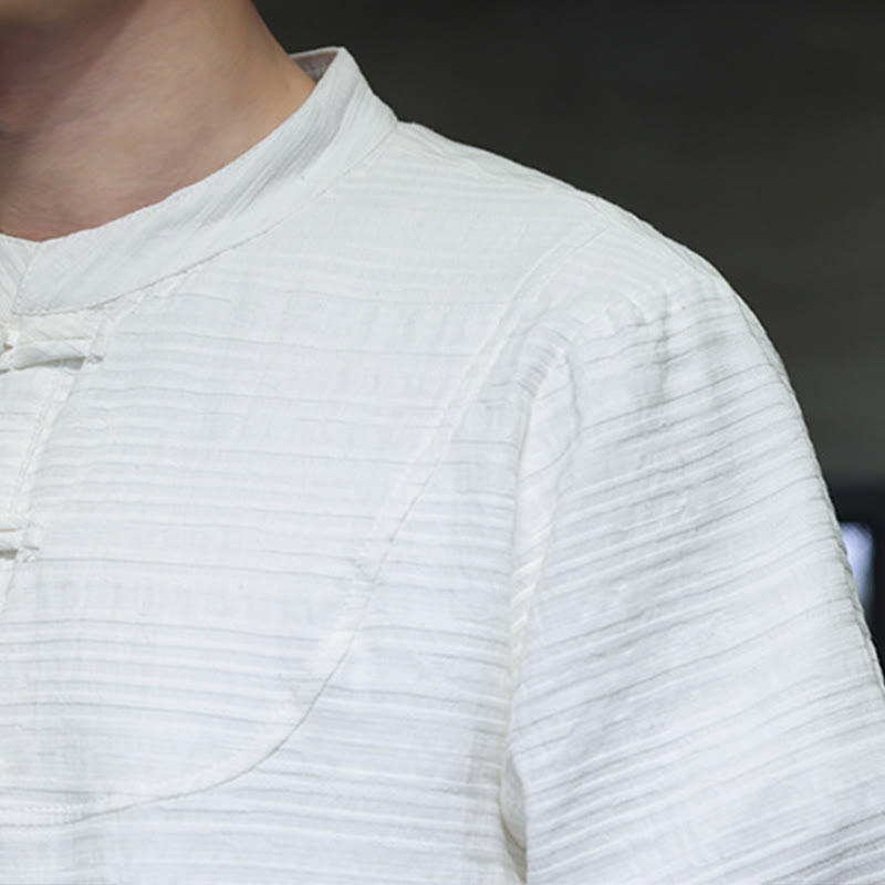 Traje de espiga de algodón y lino con botones de rana y color liso con Buddha Stones para hombre  - Blanco - US/UK/AU46, EU56 (5XL) - image 8