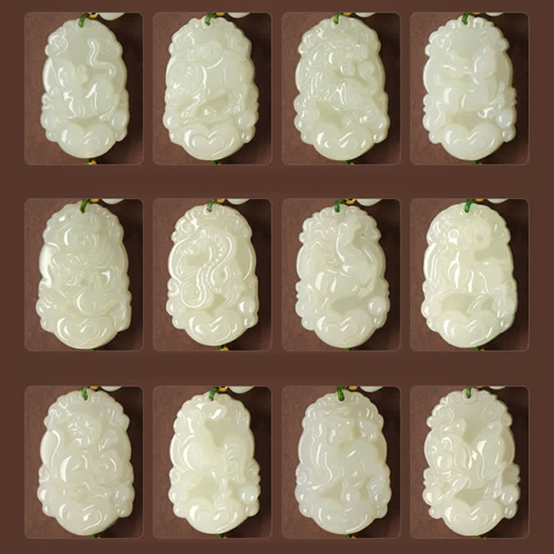 Pulsera de plata de ley 925 con zodíaco chino, jade hetiano, felicidad, suerte