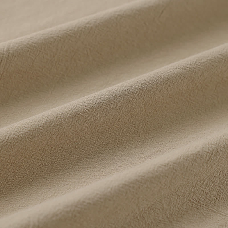 Buddha Stones Camiseta de manga corta con cuello de muesca y bordados para hombre, de algodón y lino, ideal para el verano.