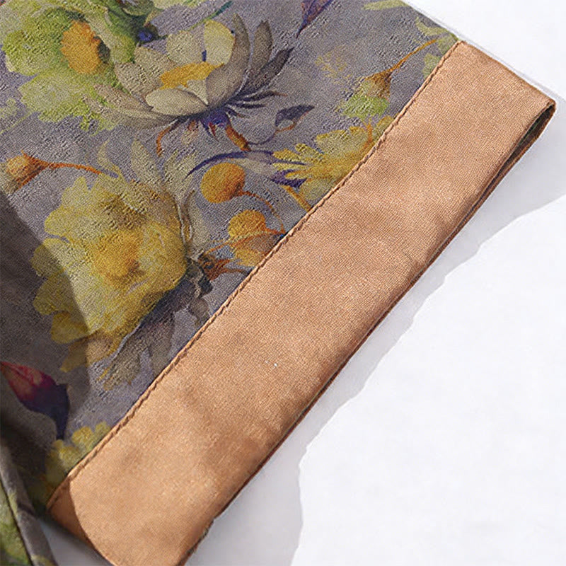 Buddha Stones Camisa de algodón para hombre, de manga corta, con estampado floral de hojas y botones de rana, de verano - image 23