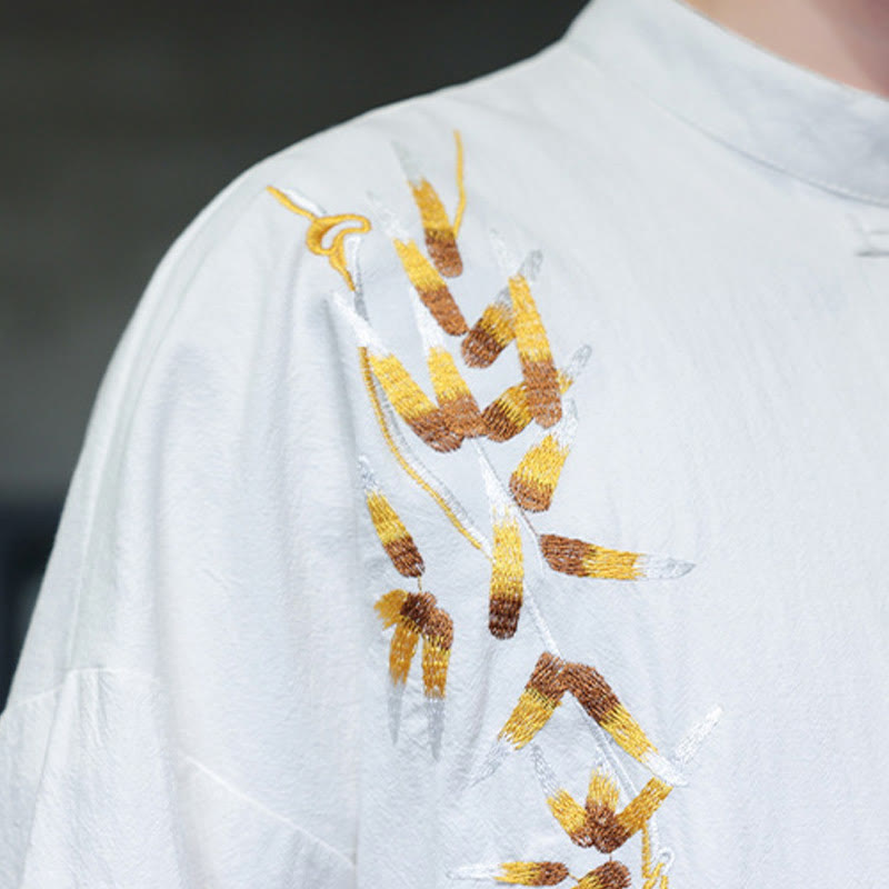 Camisa china de manga tres cuartos con botones de rana y bordado de Buddha Stones para hombre - image 23