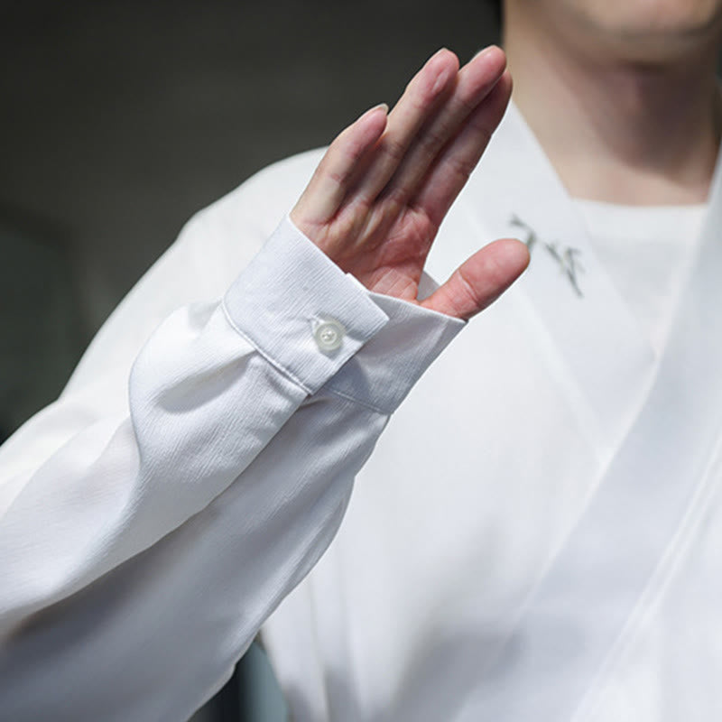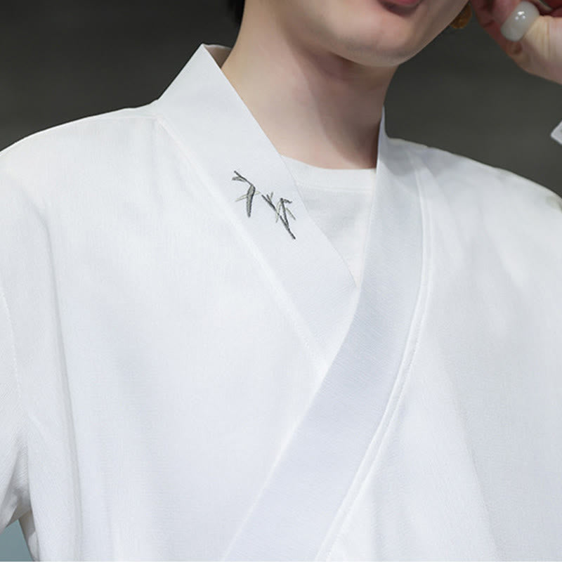 Conjunto de 2 piezas de kimono de algodón con bordado de bambú y cordones Buddha Stones, pantalones hasta los tobillos con bolsillos, ropa de meditación para hombre - Blanco - US/UK/AU46, EU56 (5XL) - image 7