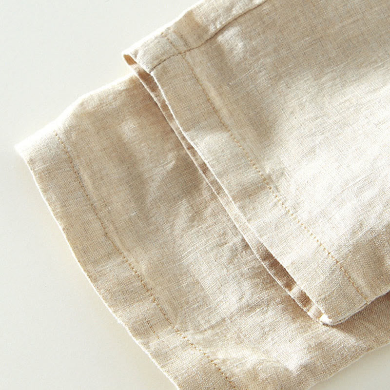 Pantalones de lino hasta el tobillo para hombre con cintura elástica y cordón ajustable con Buddha Stones y bolsillos