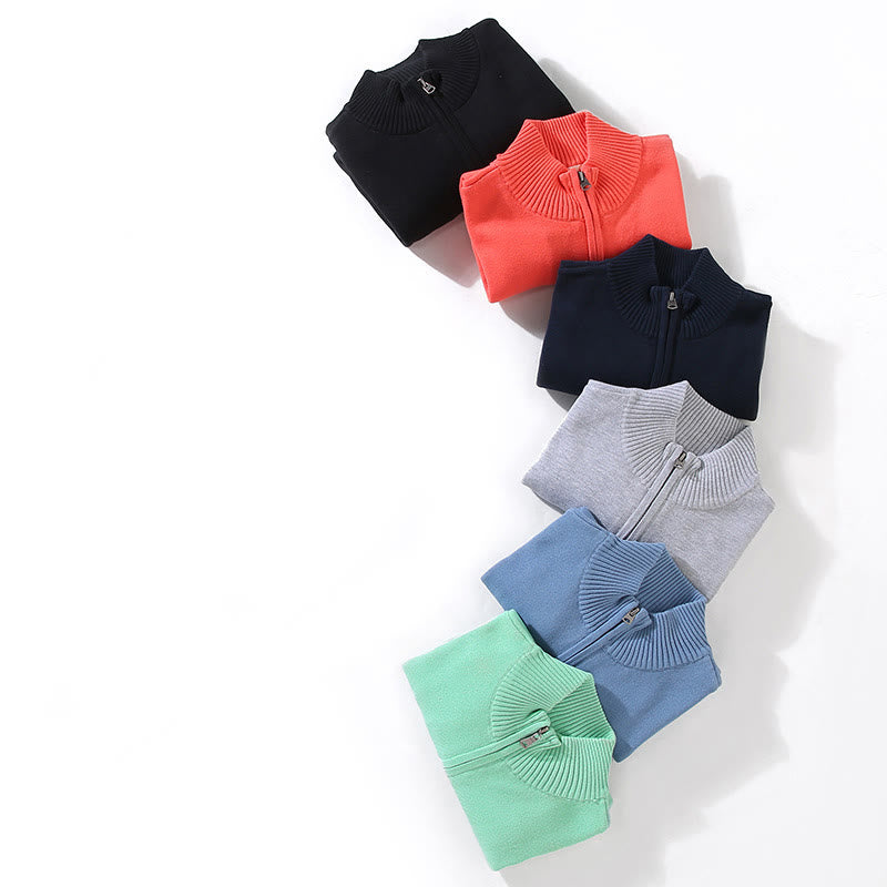 Suéter de algodón puro de manga larga con cuello alto y dobladillo liso acanalado con Buddha Stones para hombre