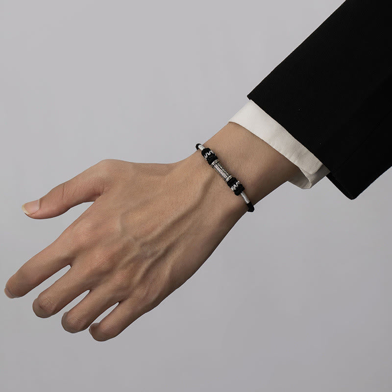 Pulsera de cuerda trenzada de sabiduría Om Mani Padme Hum de plata de ley 925 con Buddha Stones - Om Mani Padme Hum (circunferencia de la muñeca 14-21 cm) - image 0