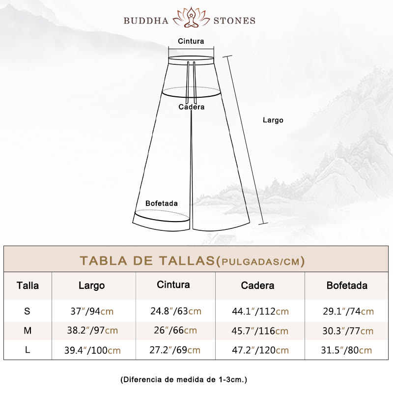 - TALLA: S (cintura 63 cm/caderas 112 cm/largo 94 cm), M(cintura 66 cm/caderas 116 cm/largo 97 cm), L(cintura 69 cm/caderas 120 cm/largo 100 cm)