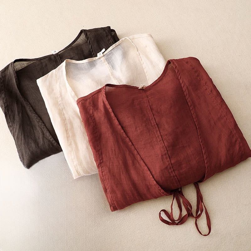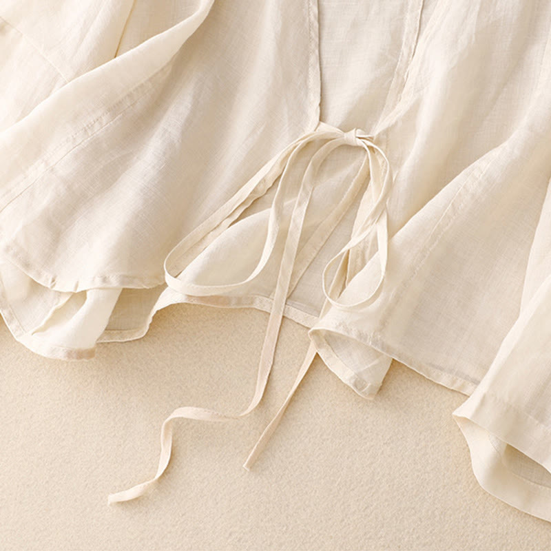 Buddha Stones Kimono de verano liso de manga larga con cordones y parte delantera abierta para mujer - Lino - US12,UK/AU16,EU44 (XL) - image 6