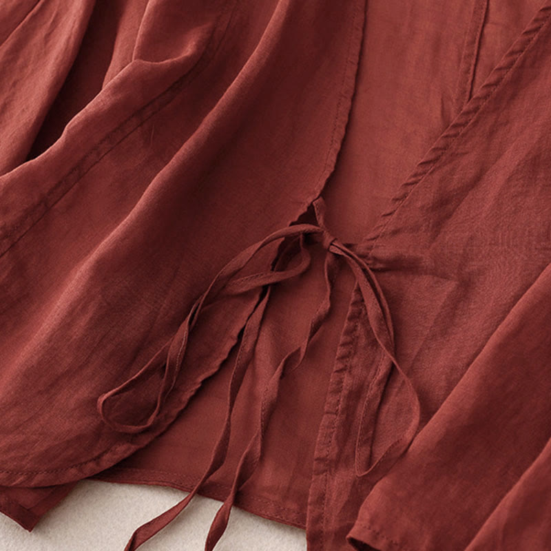 Buddha Stones Kimono de verano liso de manga larga con cordones y parte delantera abierta para mujer - SaddleBrown - US12,UK/AU16,EU44 (XL) - image 12