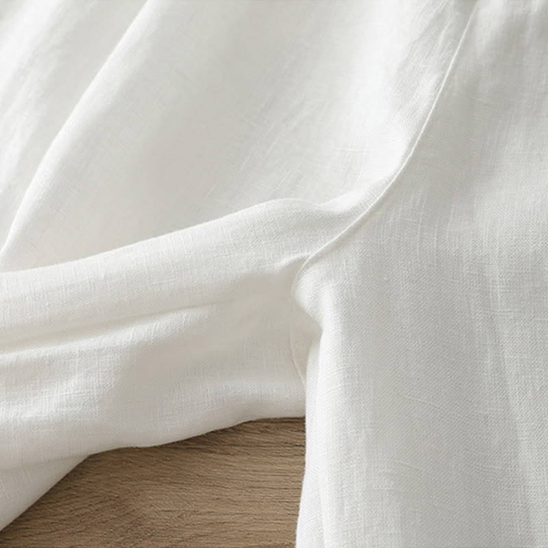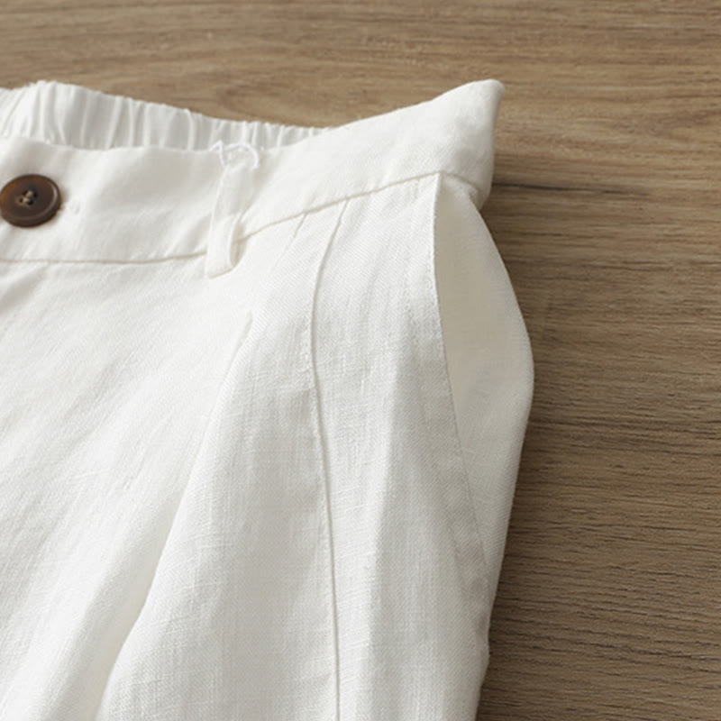 Pantalones anchos con botones y bolsillos para mujer de algodón de color liso con Buddha Stones