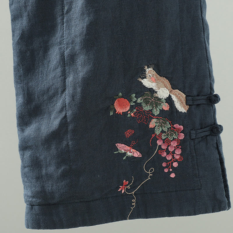 Pantalones anchos acolchados con botones de rana bordados con Buddha Stones para mujer con bolsillos