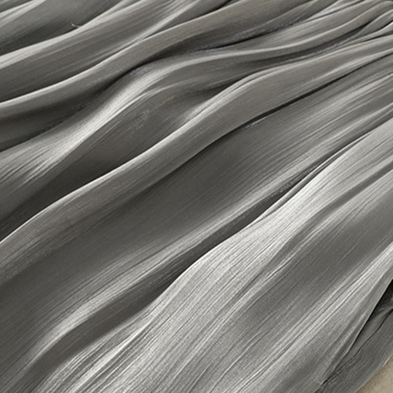 Pantalones anchos para mujer con cintura elástica, diseño plisado y bolsillos en gris claro con Buddha Stones