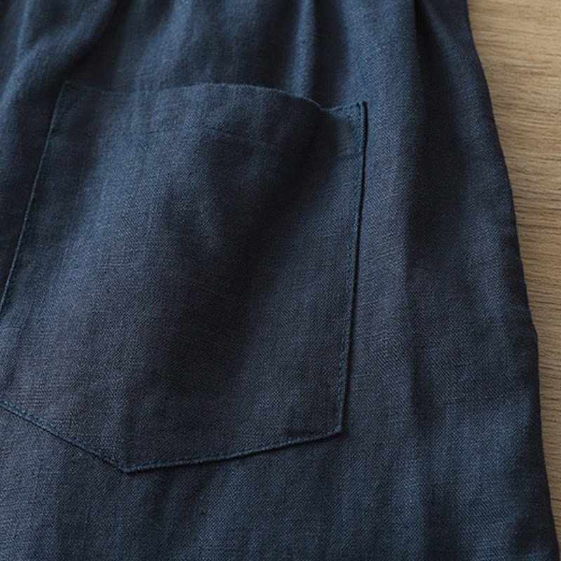 Pantalones casuales retro de algodón con pernera ancha y bolsillos con cremallera de Buddha Stones para mujer - Lino - US8-10,UK/AU12-14,EU40-42 (2XL) - image 0