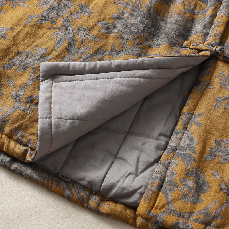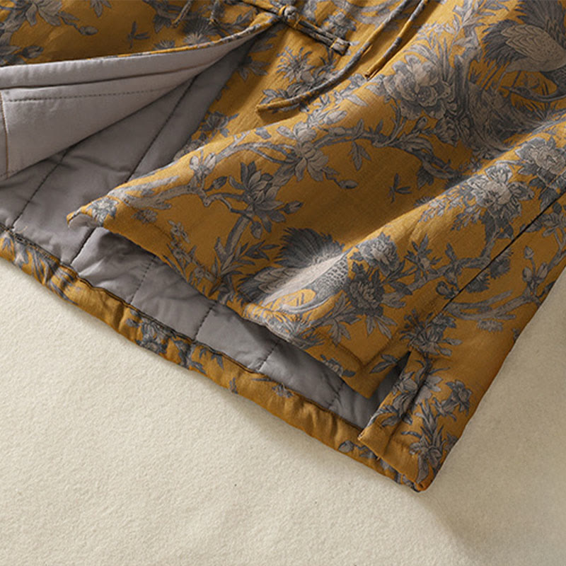 Buddha Stones Chaleco sin mangas de algodón para mujer con estampado de ranas, flores y ramas de grulla - Vara de oro - US8-10,UK/AU12-14,EU40-42 (2XL) - image 0