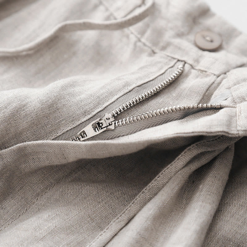 Buddha Stones Pantalones anchos de lino y algodón con cordón ajustable hasta el tobillo para mujer, de verano, con bolsillos y cremallera.